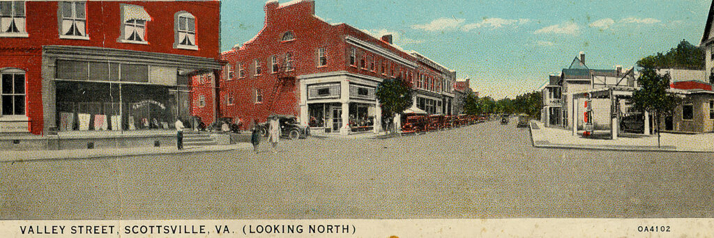 Shown below is a circa 1929 postcard that shows the C.R. Dorrier store at photo left with a view of Scottsville looking north up Valley Street: