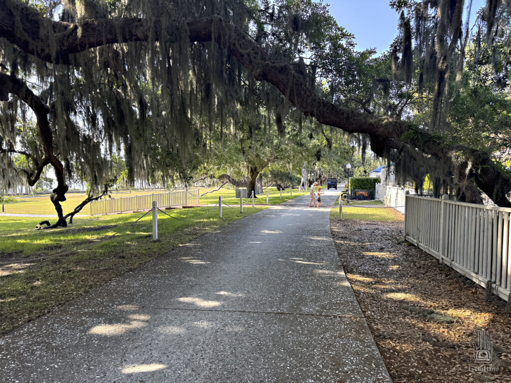 Very nice paved paths run along the river bluff the whole length of the island, and others shoot east out to the Atlantic. Conveniently, the paths pass the prime sights, from the shade of big live oaks.
