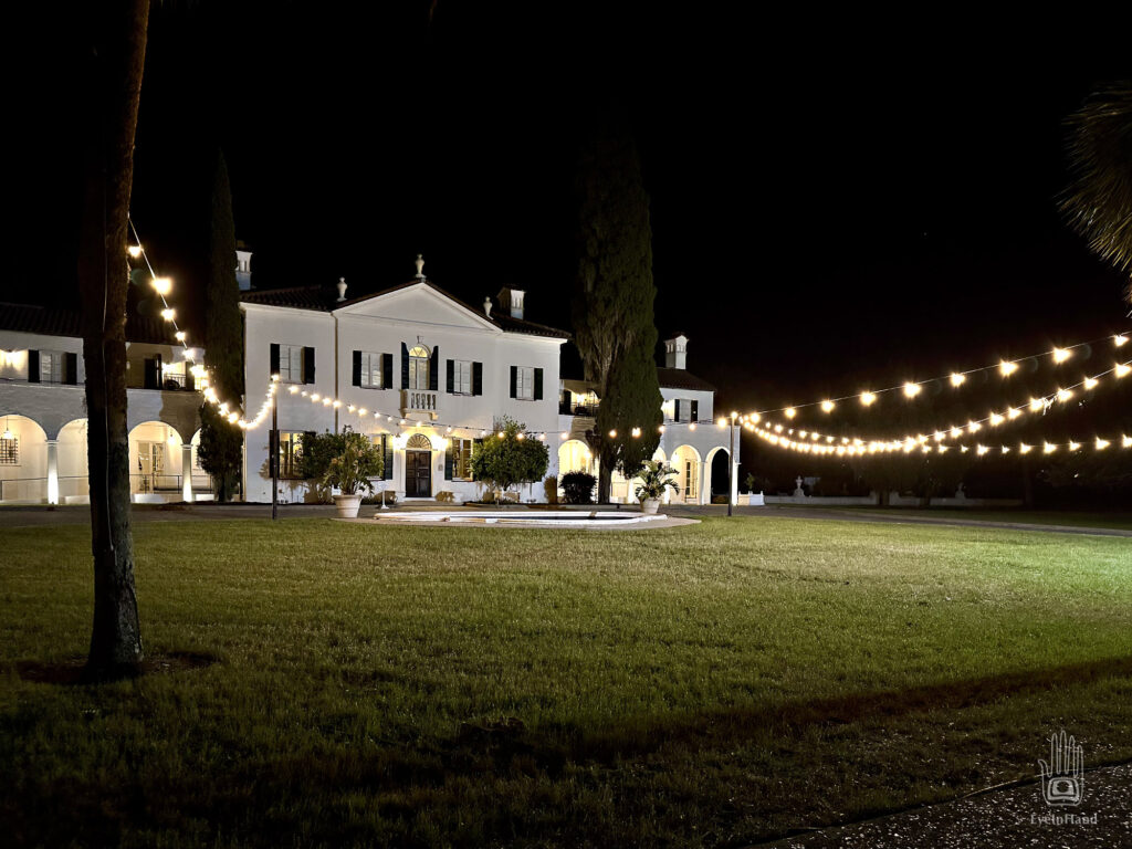 Later that night, I make the same circuit again. It’s lovely in the moonlight. Strings of Japanese paper lanterns sway in the sea breeze. The receptions are over, a few tipsy guests wobble about on shoes not meant for walking in grass.