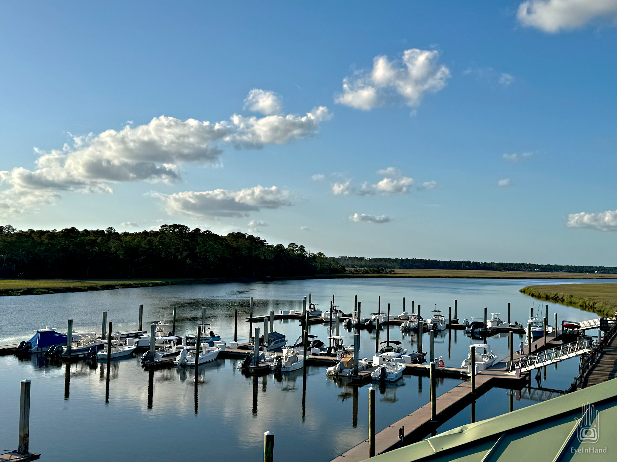Our little marina is the only public water access on an otherwise private island. There’s a tall observation tower with 360 degree views over the marshes, laundry, and showers. We make use of them all. There’s also a fleet of golf carts available to mariners, which are needed to get to the shopping area miles away at the north end of the island. We decide there’s enough time to take one and get supplies before dinner. I ask Doug if he wants to drive, to which he replies with uncharacteristic enthusiasm.