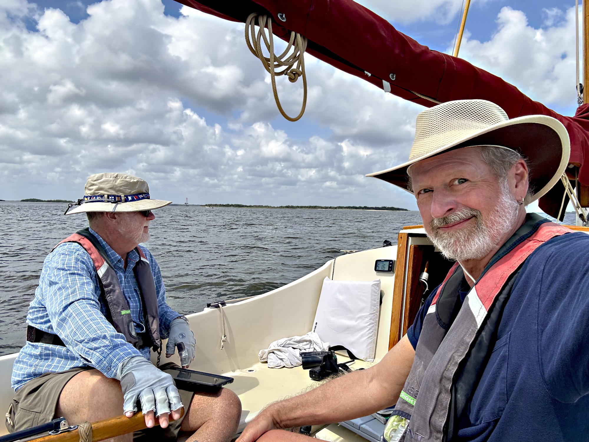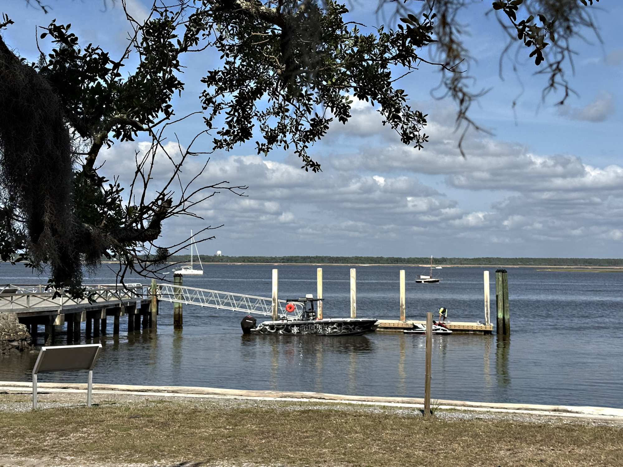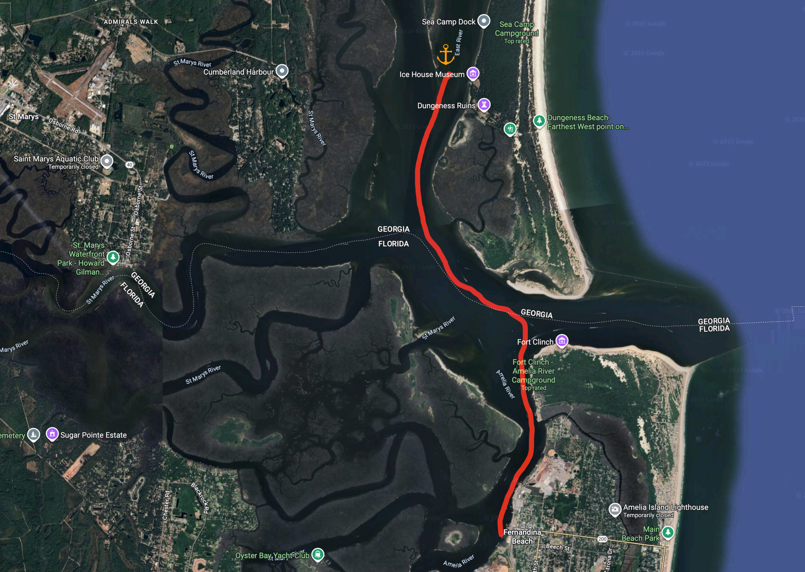 A Coast Guard Pon-Pon alert comes over the radio while we prepare to go ashore. All boats are advised to vacate and avoid the St. Mary’s Inlet for the rest of the day for a “live fire drill”. “Glad we don’t need to go out that way today,” says Doug.