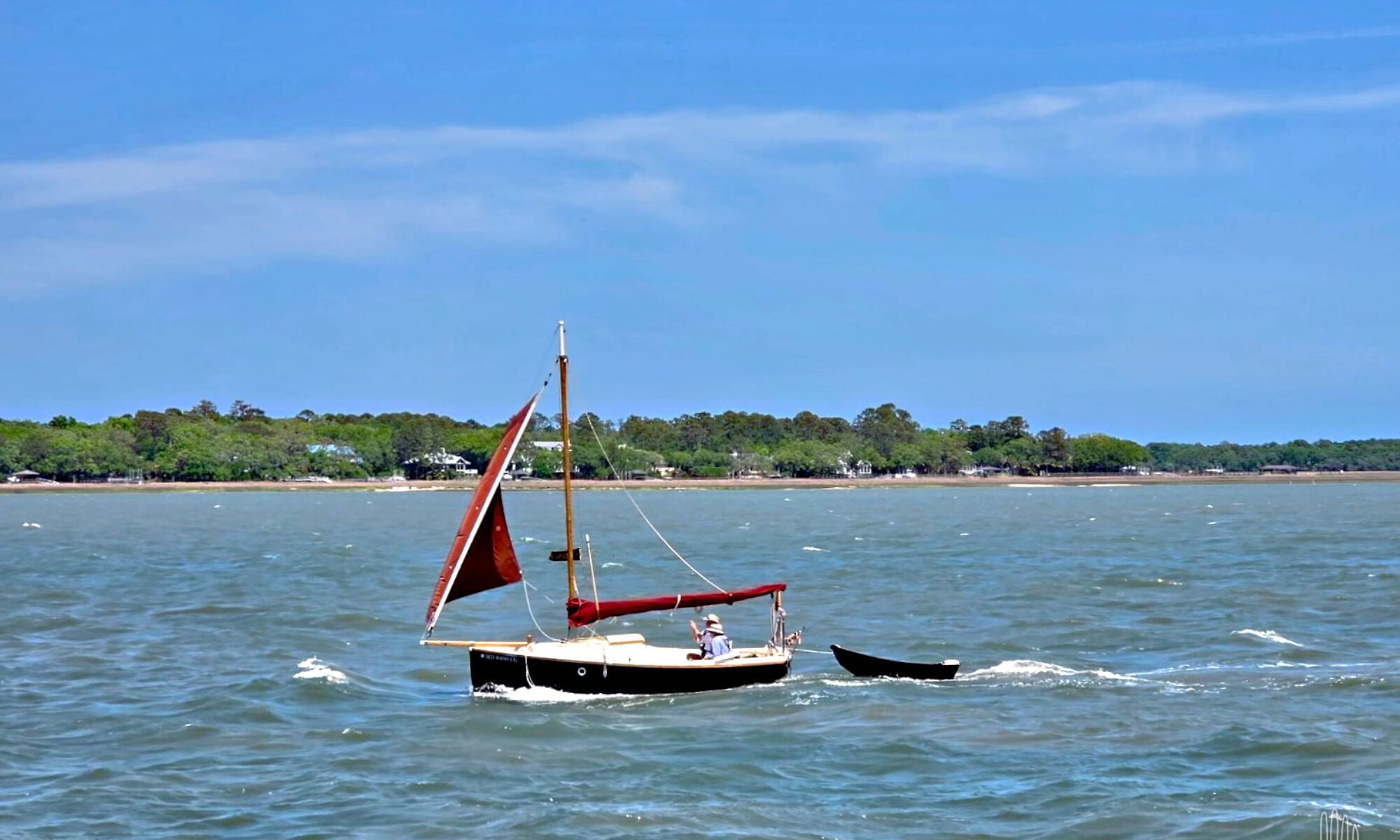 Up Calibogue Sound we go and out Skull Creek past Webb’s pier and condo, then out into Port Royal Sound. The tide has turned and carried us past Hilton Head, but that means it’s now rushing out of creeks, marshes, into two big rivers and out of Port Royal, headlong into a fresh breeze coming in off the Atlantic. Port Royal Inlet has a reputation for much unpleasantness with unwary boaters. In truth, we find the roughest passage of the past three weeks right here, coming down the home stretch.