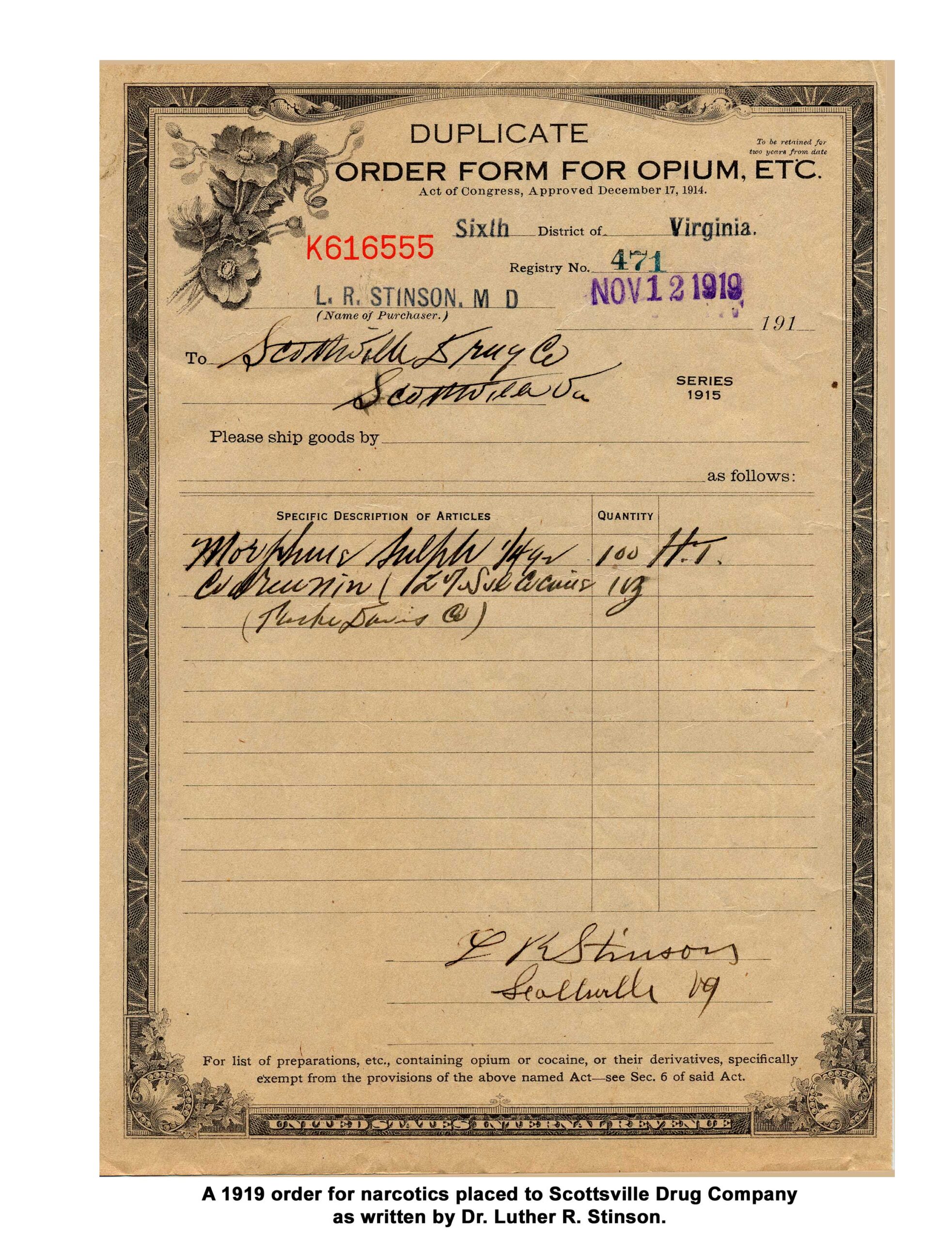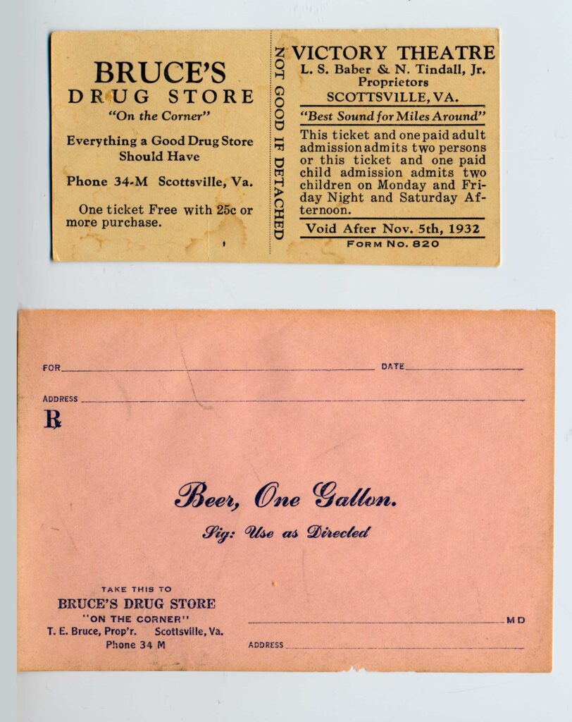 In the 1930’s, the State of Virginia allowed the sale of alcohol only for medicinal purposes. At Bruce’s Drug Store, this sale went on with the required prescriptions. However, the sale of medicinal alcohol became too frequent, and ABC officials withdrew the pharmacy’s right for alcohol sales.