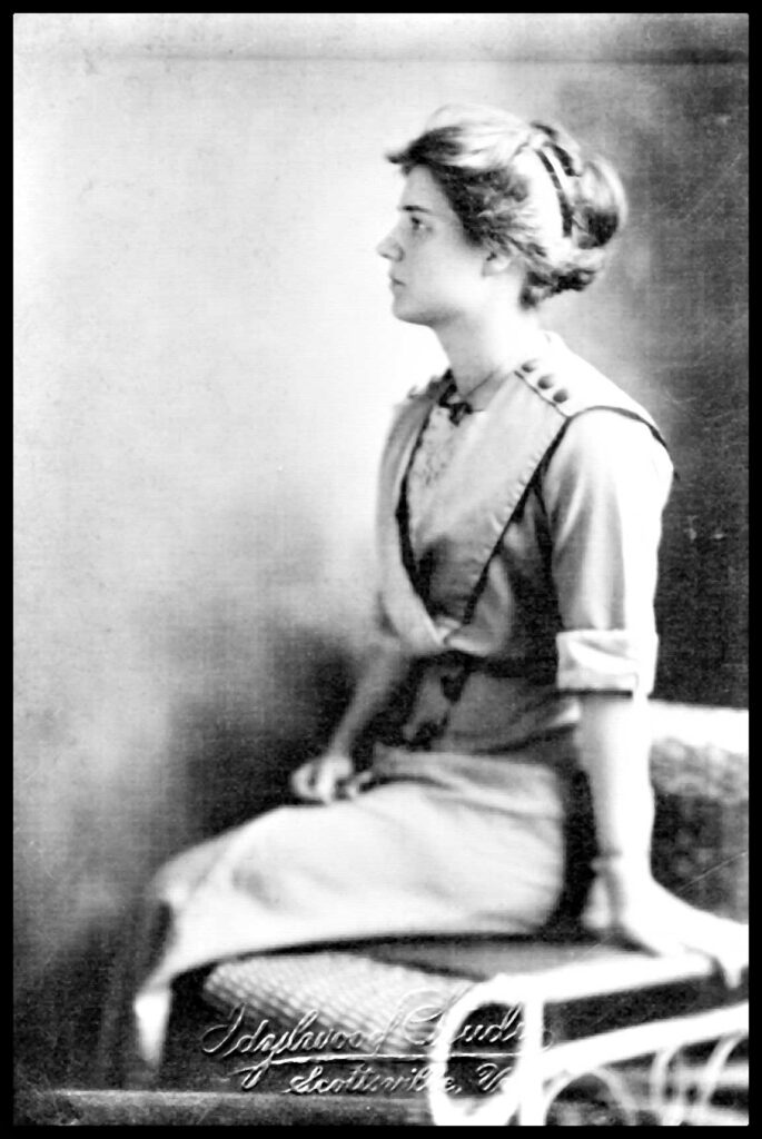 About 1911 or 1912, Ellison moved his store to the Pitts Building on Valley Street (now 330 Valley Street). The photo below at left shows Lee Bruce, Ellison’s brother and store clerk, in white shirt and leaning casually against the Scottsville Drug Company’s front display window. At right, Lee and Ellison pose for a 1913 Kodak snapshot on the drug store’s front steps. In the store’s early days in Scottsville, Lee helped his brother cover their long hours of daily operation for several years. The drug store opened seven days a week, although Sunday sales were for medicinal purposes only. In the early 1920’s, Ellison changed his store’s name to Bruce’s Drug Store.