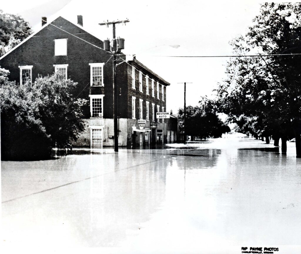 In the 1940s, Scottsville once again became the social and business center for southern Albemarle, northern Nelson, and Buckingham counties. Not since the heyday of the canal era had there been such prosperity. Everyone who watched “The Waltons” knows that The Dew Drop Inn in Scottsville was the place to be! Certainly, this was an exciting time. Coming out of a childhood lived during the depression, the townsfolk embraced the growing prosperity generated by World War II. In 1944, The Canal Warehouse, also known by then as The Farmer’s Exchange, was bought by the Scottsville Fire Department from C.R. and Clara Dorrier who had owned it for seventeen years.