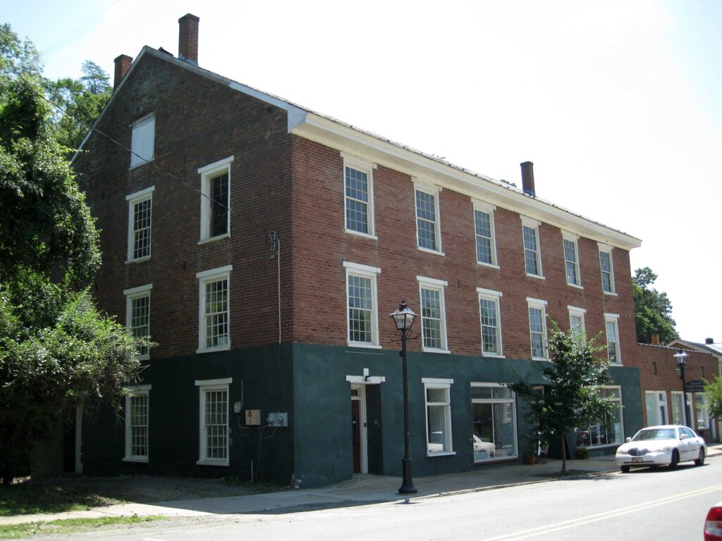 Built around 1840, this large, three-story brick building at 571 Valley Street was a tobacco factory and warehouse as late as 1880. The tobacco brands produced there included ‘Tuberose’ and ‘Mason’s Select.’ Former Mayor Raymon Thacker remembers playing in the upper story of this building around 1915 and noted there were still several tobacco bales onsite.
