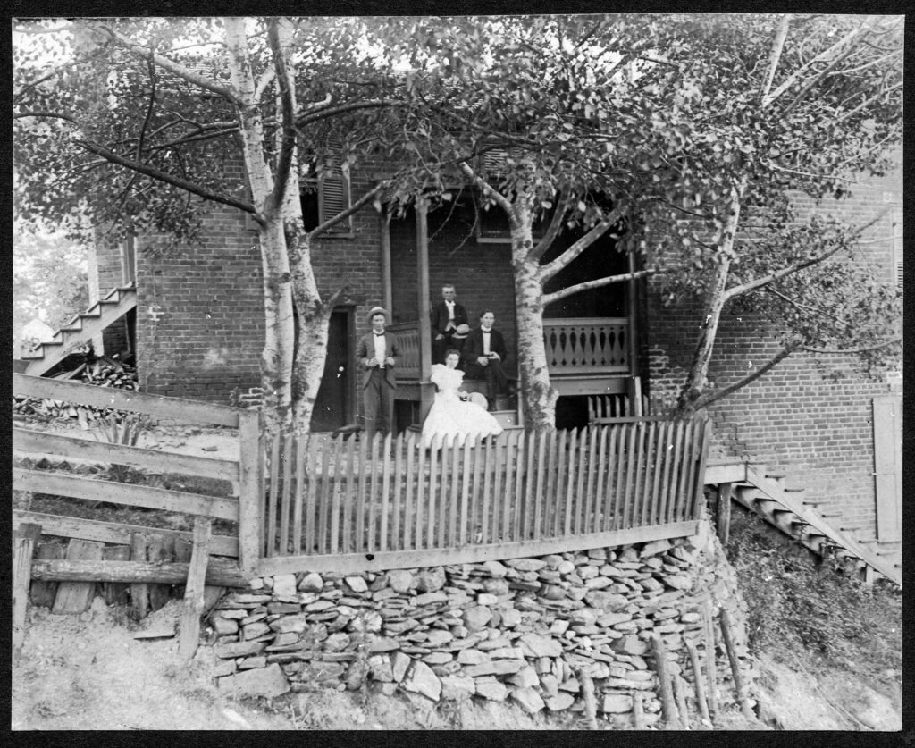 The Barclay House is a small townhouse on Scottsville’s Lot 31 and is next door to the Disciples of Christ Church (now Scottsville Museum) on Main Street. John B. Hart purchased this property without a structure in 1830 and resold the lot six months later for his original purchase price. Later Elizabeth Staples Davis lived here with her family, who are shown sitting on the Barclay steps in this 1900-vintage photo.
