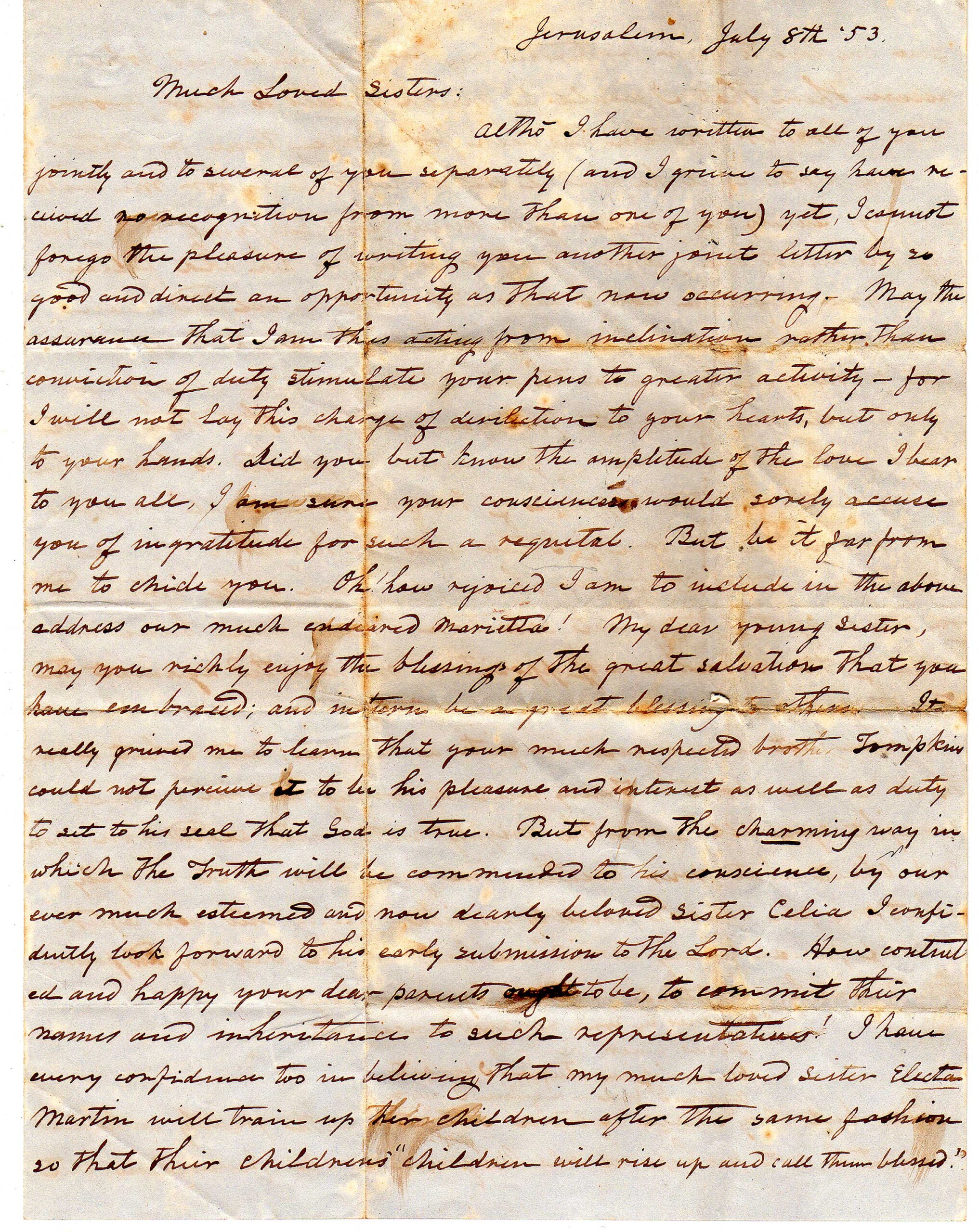 In 1851, Dr. Barclay went to Jerusalem as his Church’s first missionary, and turned over his Main Street home to Thomas Staples, an Elder in the Disciples of Christ Church.
